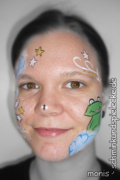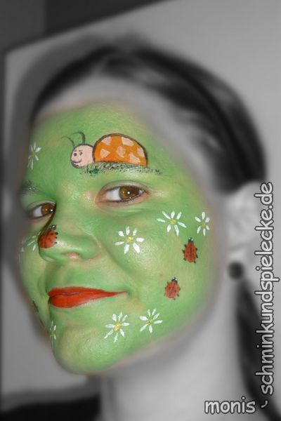 Sie planen ein Firmenfest, einen Kindergeburtstag oder ein Familienfest und möchten den dort kommenden Kindern eine Freude bereiten? Bieten Sie Kinderschminken an. Kinder lieben es geschminkt in eine andere Rolle zu schlüpfen! Es ist so schön die leuchtenden Augen von Kindern zu sehen, wenn sie geschminkt das erste Mal in den Spiegel schauen. Wenn Sie eine erfahrene Schminkerin suchen, melden Sie sich bei mir. Preise gibt es gerne auf Anfrage. Ich verwende ausschließlich wasserlösliche Profischminkfarben der Firma Eulenspiegel oder der Firma Grimas. Die Farben sind auf Hautverträglichkeit getestet und enthalten keinerlei Parfümstoffe. Irgendwann ist es an der Zeit mein Kunstwerk wieder zu entfernen. Nehmen Sie einfach Wasser und ein bisschen milde Seife und schon ist die Farbe wieder weg. |